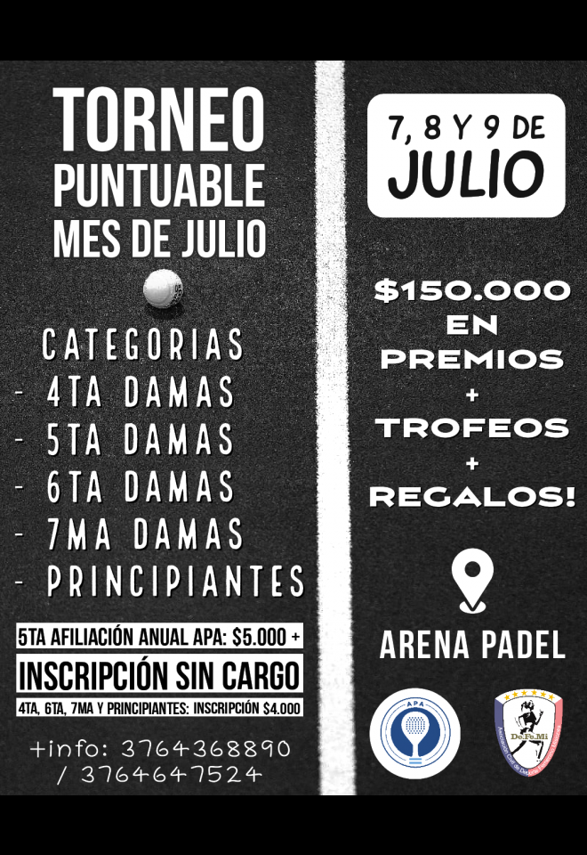 »» Evento: TORNEO PUNTUABLE MES DE JULIO »» Localidad: Posadas »» Fechas: 06/07/2023 al 09/07/2023