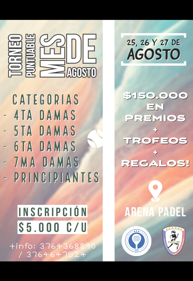 »» Evento: TORNEO PUNTUABLE MES DE AGOSTO »» Localidad: Posadas »» Fechas: 24/08/2023 al 27/08/2023